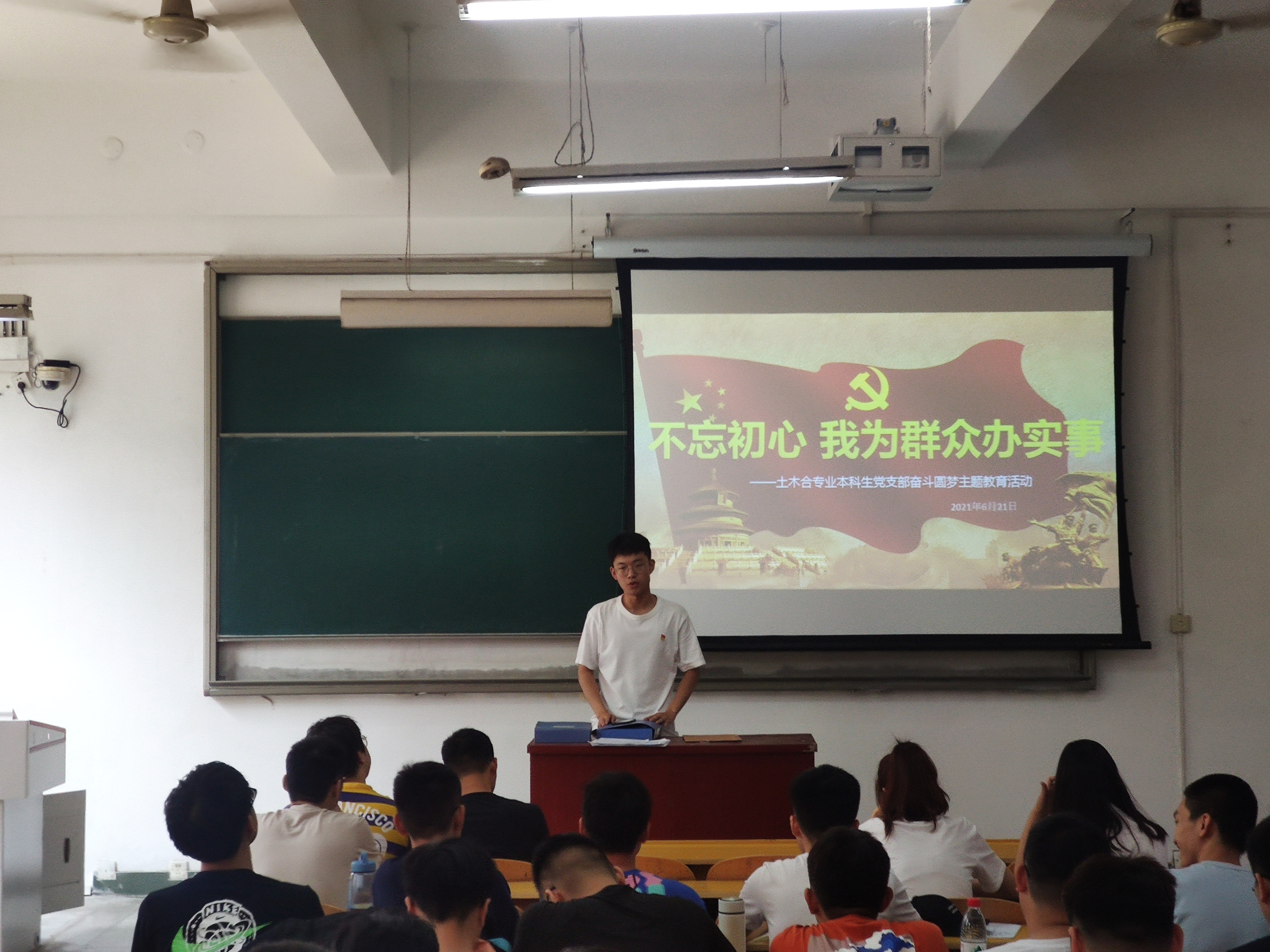 根据2021年上半年“三会一课”与党日活动安排,6月21日上午,土木合专业本科生党支部在学院103教室召开了“不忘初心,我为群众办实事”之奋斗圆梦主题教育,支部全体党员参加。
