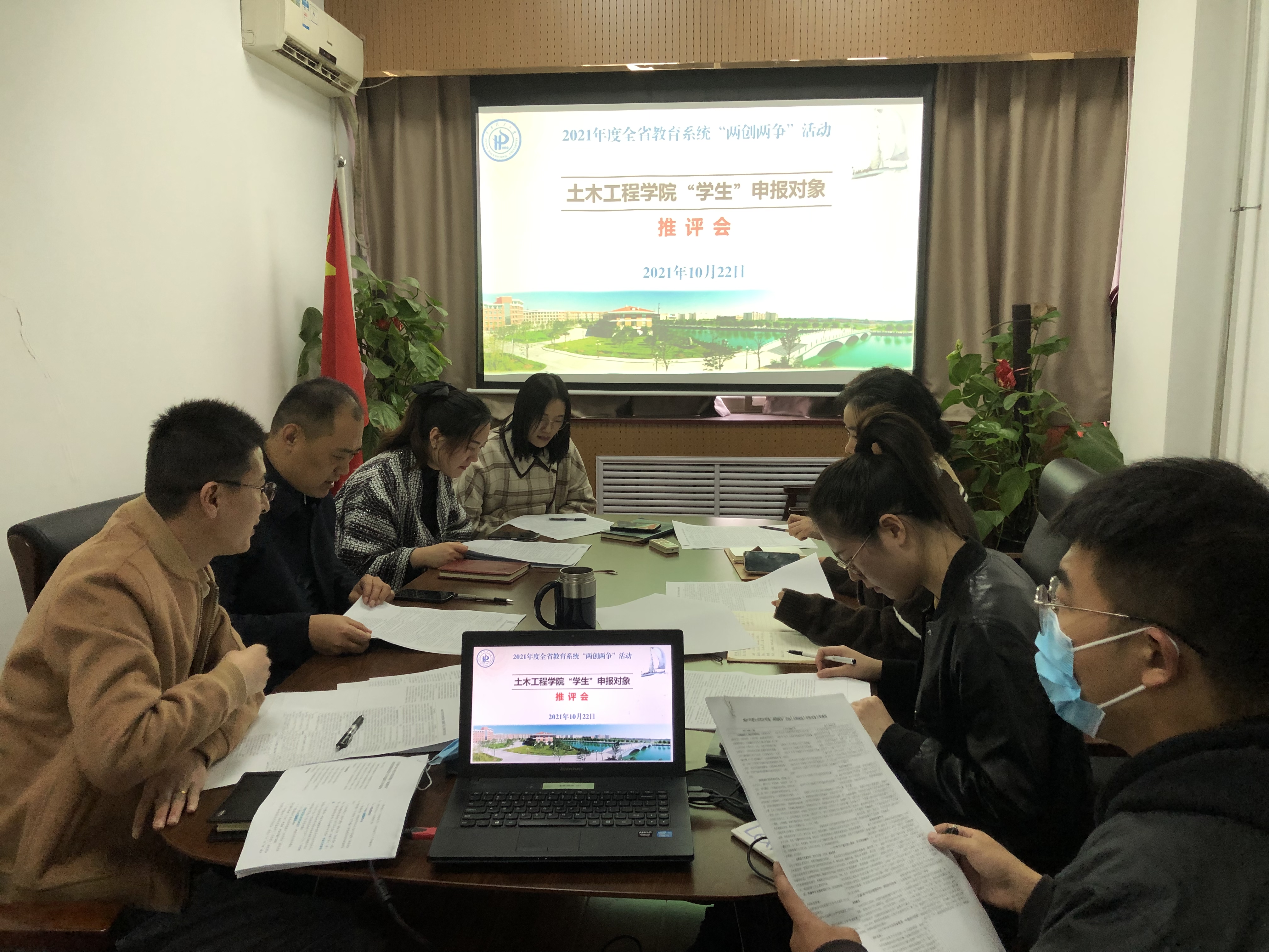 会上,尹铁军参照文件内容,进一步阐述了文明班级、文明宿舍及文明学生的评选基准。他强调,在推评选过程中,一要把握标准。深入领会和准确把握评选推荐的基本标准。二要客观公正。出于公心,依据事实,正确客观评价。三要优中选优。确保推评集体和候选人的先进性。四要以评促创。推评过程也是树立典型的过程,要通过推评树立正确价值导向,在全院营造见贤思齐、奋进向上的良好氛围。随后委托学工办主任何军将各年级推报上来的3个文明班级候选集体、2个文明宿舍候选集体、5个文明学生候选个人的主要成绩进行了逐一汇报。随后,各年级辅导员结合实际情况及相关材料内容,本着公允的立场、公道的态度,对所有参评的班级、宿舍及个人的相关材料进行了深入讨论。研究决定将土木合2018-3班和土木合2019-2班马斯凯分别作为我院的推荐候选集体和候选人,推送至学生工作部(处)参加校级评选推荐工作。最后,尹铁军指出,我院秉承客观、理性的态度,本着公平、公正的原则,完成了本次推评工作。会后,相关分管辅导员要紧密结合评选标准加以指导,力争在校级评选中脱颖而出,在日后发挥其模范引领作用。通过本次评选推荐,要进一步贯彻落实全国全省教育大会、高校思想政治工作会议精神,围绕立德树人根本任务,扎实推进文明校园建设,培育和践行社会主义核心价值观,大力弘扬共筑美好生活梦想的时代新风。