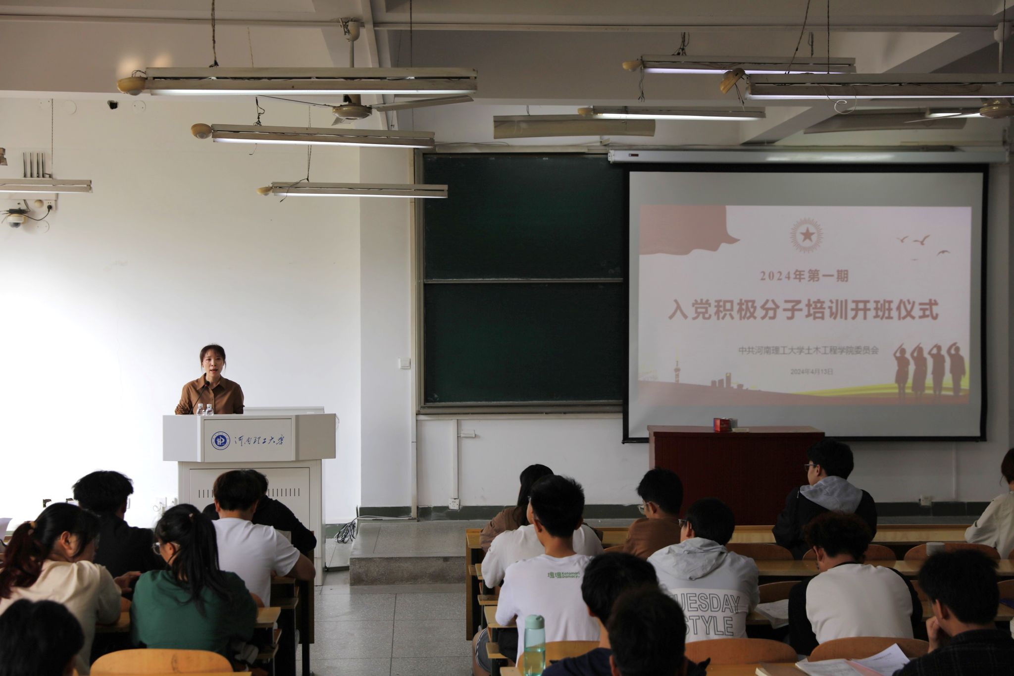 杨波在开班仪式上做了动员讲话。她首先代表学院党委向参加本期培训的入党积极分子表示祝贺,随后就培训的意义和目标进行了深刻阐述。同时她对学员提出三点希望和要求:一是树立远大理想,把个人发展与国家命运紧密相连,作为土木工程专业的学生,肩负着推动国家基础设施建设和经济社会发展的重任,要为实现中华民族伟大复兴的中国梦贡献力量。二是锤炼高尚品格,严于律己、宽以待人,始终保持艰苦奋斗的精神风貌,自觉恪守社会公德,成为社会风尚的引领者。三是练就过硬本领,既要精通专业技能,又要提升人文素养,做到知行合一、德才兼备,以适应新时代对复合型人才的需求。