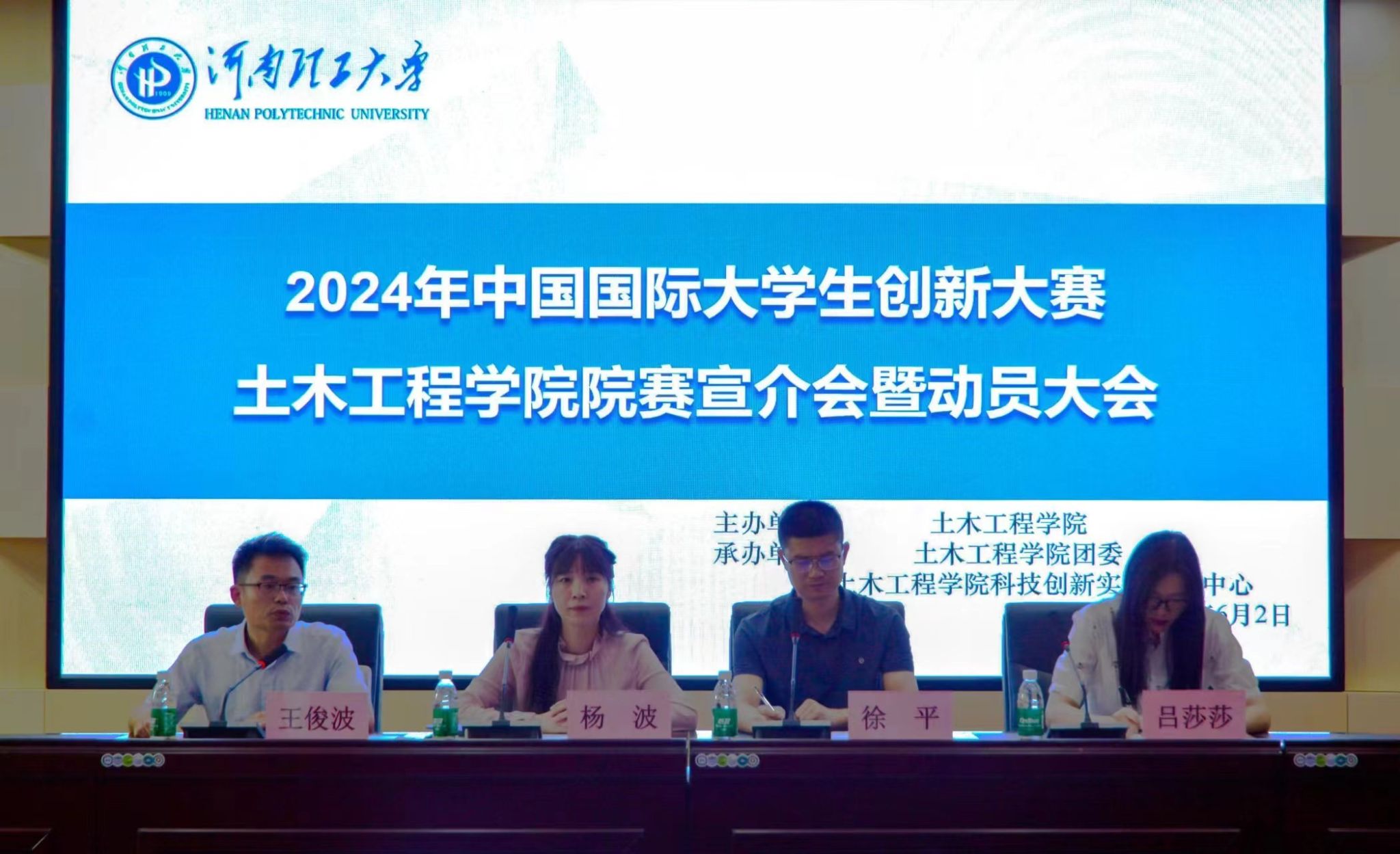 为充分动员全院师生积极参与中国国际创新大赛,提升学院科创竞赛实力,6月2号上午,在学院101会议室举办了中国国际大学生创新大赛宣介会,学院党委副书记杨波、副院长徐平出席会议,辅导员代表和22级、23级班长共50余人参加会议,会议由教科办主任王俊波主持。
