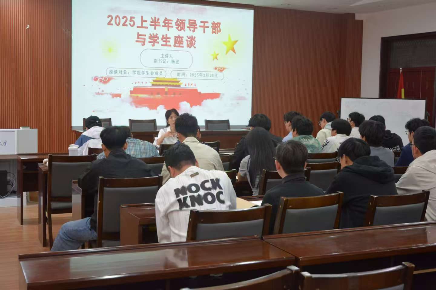 为进一步深化学院领导与学生干部之间的沟通交流,加强学生干部队伍建设,全面提升学生工作的引领力、组织力与服务力,3月25日下午,我院党委副书记杨波在学院一楼学术报告厅与院研究生会、学生会学生干部及骨干进行深入座谈交流。