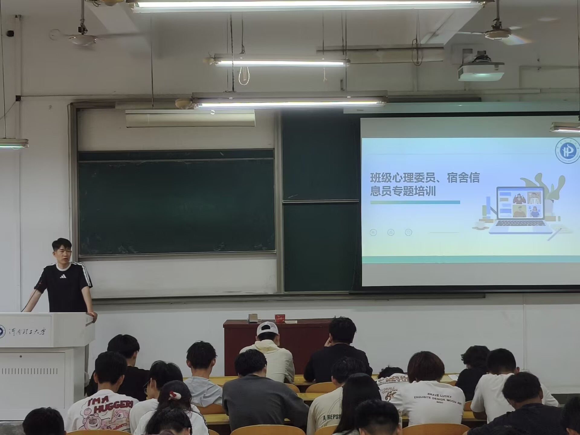 在“5·25心理健康日”来临之际,按照学院心理健康教育活动月活动安排,5月20日下午,我院在102教室开展了心理健康宣传教育月专题培训会。本次培训由学院心理辅导员银谦主讲,全院研究生及本科生心理委员、宿舍信息员及学生骨干等130人参加培训。