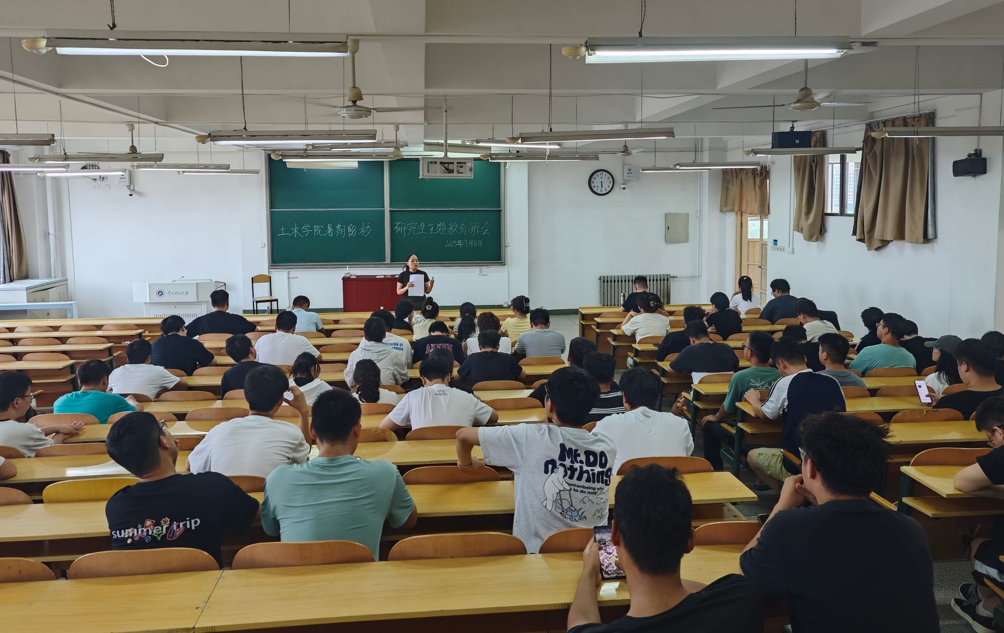 此次主题教育班会的成功召开,进一步增强了留校研究生的安全防范意识,明确了暑期留校的各项管理规定,为做好暑期研究生留校及教育管理工作奠定了坚实基础。同时希望全体留校研究生能遵守相关规章制度,合理安排作息时间,过一个安全愉快和充实有益的假期。